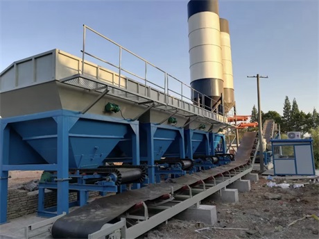 800型疊加式二次攪拌廠拌說明,此模式是采用兩個攪拌機疊加的方法,由集料倉、主送料皮帶、粉料倉、儲水罐、成品攪拌缸、成品輸送皮帶、成品料倉和操作室構(gòu)成的。在傳統(tǒng)的單機穩(wěn)定土拌合設(shè)備,將成品攪拌缸、成品輸送皮帶及成品料倉縱向前移,在空出的位置安裝一個干料攪拌機和半成品輸送皮帶,干料攪拌缸進料口與主送料皮帶連接,出料口通過半成品輸送皮帶與成品攪拌機的進料口連接,形成雙機兩級串聯(lián)攪拌模式。另一種模式是采用兩個攪拌機疊加的方法,具有結(jié)構(gòu)緊湊,占地面積小等特點。 800噸穩(wěn)定土廠拌拌合要求: (1)開始拌合前,拌合場的備料應(yīng)能滿足3~5天的攤鋪用料。 (2)每天開始拌合前,應(yīng)檢查場內(nèi)各種集料的含水量,計算當天的配合比,外加水與天然含水量的總和要比良好含水量略高(1%左右)。 (3)在正式拌合混合料之前,必須先調(diào)試所有設(shè)備,使混合料的顆粒組成和含水量都達到規(guī)定的要求。原集料的顆粒組成發(fā)生變化時,應(yīng)重新調(diào)試設(shè)備。 (4)雨季施工時應(yīng)注意天氣變化,基層施工后下雨應(yīng)立即停止施工,并采取措施保證已攤鋪的混合料。對于原材料,特別是細集料應(yīng)設(shè)固定或活動棚蓋,防止被雨淋濕。 (5)每天開始攪拌之后,出料時要取樣檢查是否符合給定的配合比,進行正式生產(chǎn)之后,每1~2小時檢查一次拌和情況,抽檢其配比、含水量是否變化。高溫作業(yè)時,早晚與中午的含水量要有區(qū)別,要按溫度變化及時調(diào)整。發(fā)現(xiàn)干濕不均,有離析的混合料要廢棄。 (6)高溫季節(jié)使用散裝水泥時,混合料出場溫度不得超過35℃。 (7)連續(xù)式拌和出現(xiàn)的“料頭”、“料尾”質(zhì)量不良的混合料,應(yīng)改作它用或予以廢棄。 WDB800型穩(wěn)定土廠拌設(shè)備工藝流程: 工程所需骨料分別用裝載機裝入3-6個料斗,開啟料斗閘門,骨料落到皮帶秤皮帶上,各皮帶秤按工程設(shè)定流量值自動定量連續(xù)稱量和輸送所需骨料,然后由水平皮帶機把骨料送入攪拌裝置,所需粉料由粉料倉1-4個經(jīng)螺旋輸送機送至螺旋電子稱,螺旋電子稱按照重量設(shè)定值自動連續(xù)的稱量出所需用的粉料,送至攪拌裝置內(nèi);攪拌用水由水泵經(jīng)過調(diào)節(jié)閥門及管路按工程所需水量送至加水器噴頭,均勻的噴灑在攪拌裝置內(nèi),進入攪拌機的物料在攪拌機內(nèi)相互反轉(zhuǎn)的兩根攪拌軸上螺旋漿片的攪拌下,受到漿片周向、徑向、軸向力的作用,使物料產(chǎn)生擠壓摩擦、剪切、對流,從而進行劇烈的強制攪合,并向出料口推移,當物料到達機內(nèi)出料口時,各種物料已相互得到均勻的拌合,并具有了壓實需要的含水量,此后均勻的物料由出料口落到斜皮帶機上,由該皮帶機輸送到儲料倉內(nèi),等待運料車到來后,由氣缸控制的斗門開啟,裝車后斗門關(guān)閉,成品料運往施工現(xiàn)場。