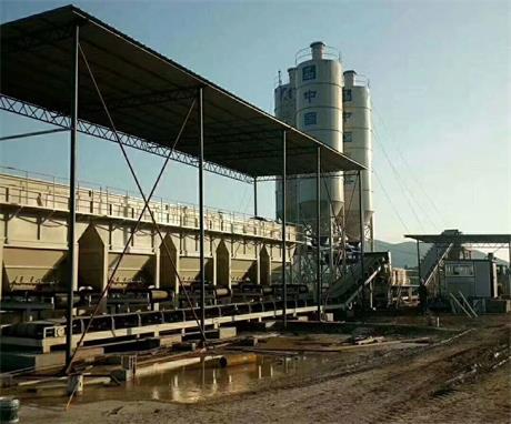 800型穩定土拌合站,水泥穩定土拌合站設備的工藝流程: 工程所需骨料分別用裝載機裝入各個料斗,開啟料斗閘門,骨料落到皮帶秤皮帶上,各皮帶秤按工程設定流量值自動定量連續稱量和輸送所需骨料,然后由水平皮帶機把骨料送入攪拌裝置,所需粉料由粉料倉經螺旋輸送機送至螺旋電子稱,螺旋電子稱按照重量設定值自動連續的稱量出所需用的粉料,送至攪拌裝置內;攪拌用水由水泵經過調節閥門及管路按工程所需水量送至加水器噴頭,均勻的噴灑在攪拌裝置內,進入攪拌機的物料在攪拌機內相互反轉的兩根攪拌軸上螺旋漿片的攪拌下,受到漿片周向、徑向、軸向力的作用,使物料產生擠壓摩擦、剪切、對流,從而進行劇烈的強制攪合,并向出料口推移,當物料到達機內出料口時,各種物料已相互得到均勻的拌合,并具有了壓實需要的含水量,此后均勻的物料由出料口落到斜皮帶機上,由該皮帶機輸送到儲料倉內,等待運料車到來后,由氣缸控制的斗門開啟,裝車后斗門關閉,成品料運往施工現場。